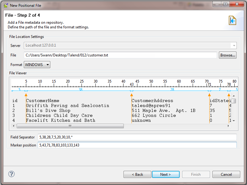 A component like a track bar where user can select several positions in a file determining a initial and final position of each field