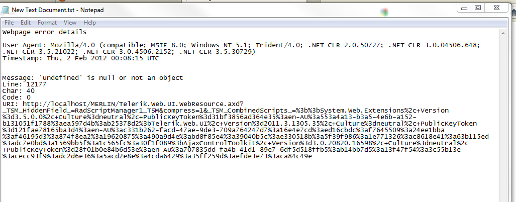 Attached are the screen snippets of the output in IE, the text of the Javascript error and a section of the code that establishes the RadEditor.