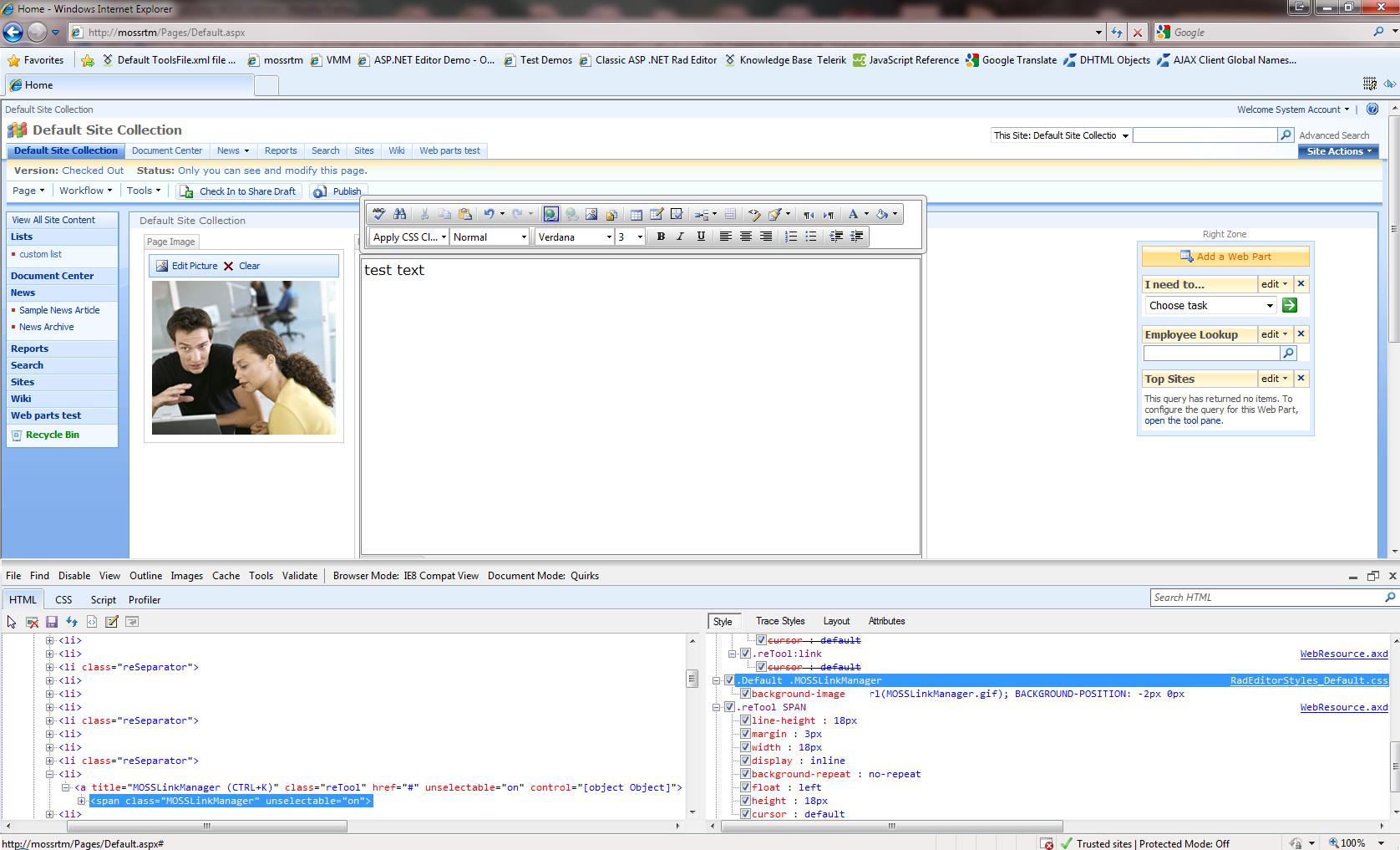What version of RadEditor for MOSS are you using?