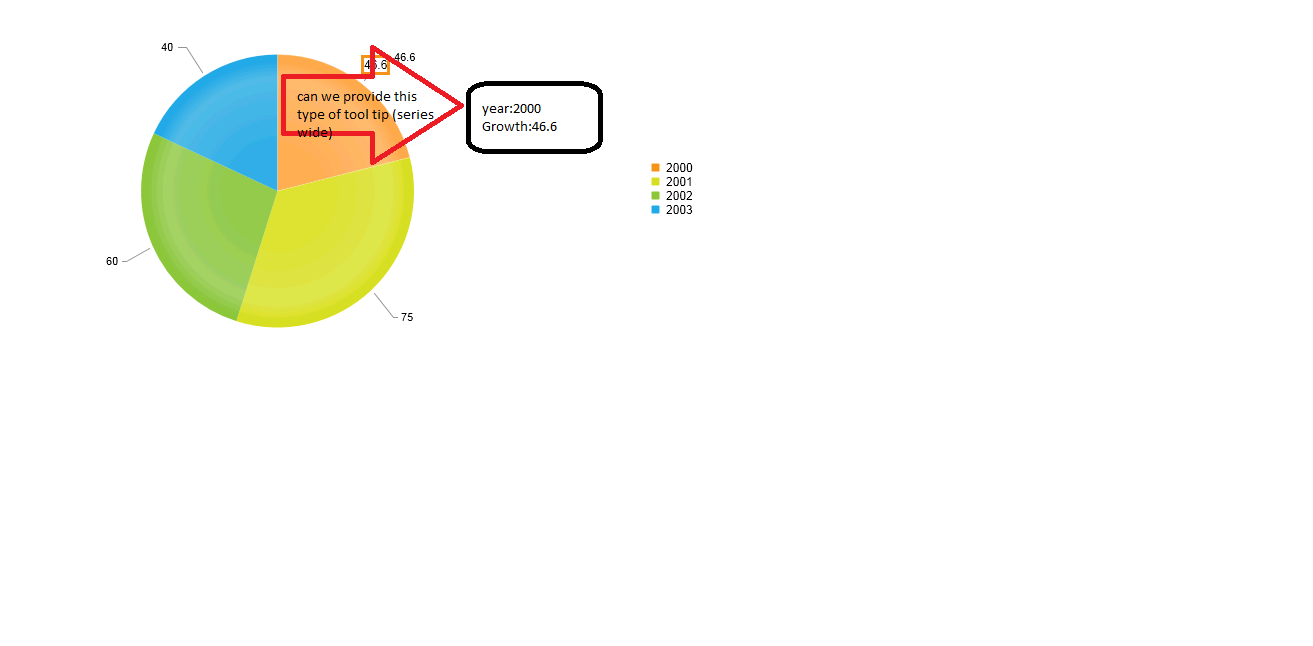 I am showing year wise population growth in the pie chart. I am getting Growth % value as toolltip while mouse over on the sector/region of the piechart. Can i get Year:2001(Coresponding year) and Growth(%): Please find attachment and give replay as soon as possible.