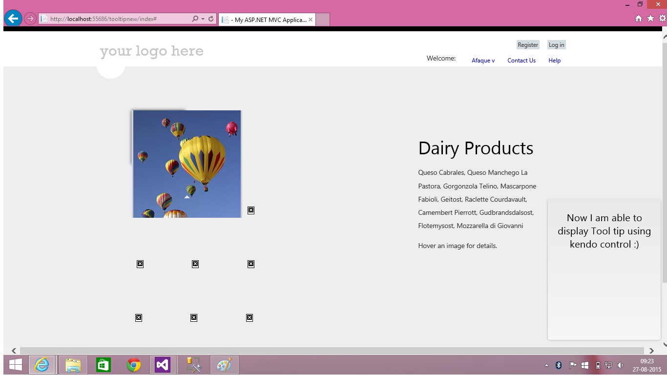 I am using kendo Tooltip to display on images on my page. but every time I hover over on image, tooltip appears on right corner of my screen.