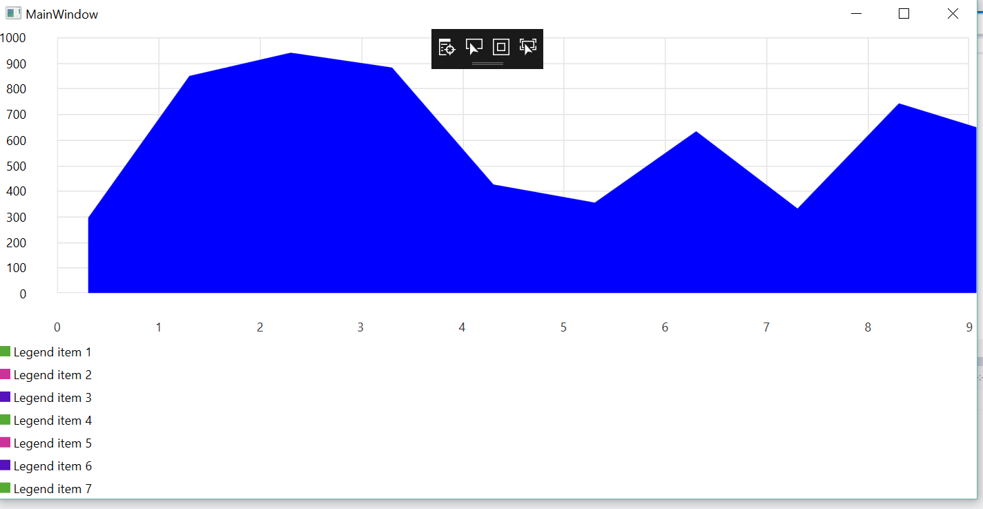 <Grid> <StackPanel> <telerik:RadCartesianChart Palette="Windows8" Height="300"> <telerik:RadCartesianChart.Behaviors> <telerik:ChartTooltipBehavior Placement="Top" /> </telerik:RadCartesianChart.Behaviors> <telerik:RadCartesianChart.VerticalAxis> <telerik:LinearAxis Margin="0 0 20 0" MajorTickLength="0" LineStroke="Transparent"> <telerik:LinearAxis.LabelStyle> <Style TargetType="TextBlock"> <Setter Property="Margin" Value="0 0 10 0" /> </Style> </telerik:LinearAxis.LabelStyle> </telerik:LinearAxis> </telerik:RadCartesianChart.VerticalAxis> <telerik:RadCartesianChart.HorizontalAxis> <telerik:CategoricalAxis Margin="0 20 0 0" MajorTickLength="0" LineStroke="Transparent"/> </telerik:RadCartesianChart.HorizontalAxis> <telerik:AreaSeries CategoryBinding="Category" ValueBinding="YValue" ItemsSource="{Binding Items}" Fill="Blue" Margin="30,0"> <telerik:AreaSeries.TooltipTemplate> <DataTemplate> <ItemsControl ItemsSource="{Binding Converter={StaticResource MyConverter}}"> <ItemsControl.ItemTemplate> <DataTemplate> <TextBlock Text="{Binding}" FontSize="14"> </TextBlock> </DataTemplate> </ItemsControl.ItemTemplate> </ItemsControl> </DataTemplate> </telerik:AreaSeries.TooltipTemplate> <telerik:AreaSeries.DefaultVisualStyle> <Style TargetType="Path"> <Setter Property="Fill" Value="Transparent"/> </Style> </telerik:AreaSeries.DefaultVisualStyle> </telerik:AreaSeries> <telerik:RadCartesianChart.Grid> <telerik:CartesianChartGrid MajorLinesVisibility="XY" /> </telerik:RadCartesianChart.Grid> </telerik:RadCartesianChart> <telerik:RadLegend> <telerik:RadLegend.ItemsPanel> <ItemsPanelTemplate> <telerik:RadWrapPanel Orientation="Vertical" ItemWidth="120" /> </ItemsPanelTemplate> </telerik:RadLegend.ItemsPanel> <telerik:RadLegend.Items> <telerik:LegendItemCollection> <telerik:LegendItem MarkerFill="#FF55AA33" MarkerStroke="Black" Title="Legend item 1" /> <telerik:LegendItem MarkerFill="#FFCC3399" MarkerStroke="Black" Title="Legend item 2" /> <telerik:LegendItem MarkerFill="#FF5511BB" MarkerStroke="Black" Title="Legend item 3" /> <telerik:LegendItem MarkerFill="#FF55AA33" MarkerStroke="Black" Title="Legend item 4" /> <telerik:LegendItem MarkerFill="#FFCC3399" MarkerStroke="Black" Title="Legend item 5" /> <telerik:LegendItem MarkerFill="#FF5511BB" MarkerStroke="Black" Title="Legend item 6" /> <telerik:LegendItem MarkerFill="#FF55AA33" MarkerStroke="Black" Title="Legend item 7" /> <telerik:LegendItem MarkerFill="#FFCC3399" MarkerStroke="Black" Title="Legend item 8" /> <telerik:LegendItem MarkerFill="#FF5511BB" MarkerStroke="Black" Title="Legend item 9" /> </telerik:LegendItemCollection> </telerik:RadLegend.Items> </telerik:RadLegend> </StackPanel> </Grid>The converter is simple, it is just returning a string.