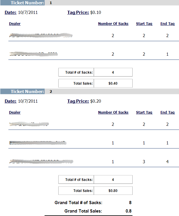 Everything is working fine expect the Grand Total Sales Price. Although I am not happy with the way I get the Grand Total Number of Sacks (using for each statements), its all I know. If you know of a better way to do it, please let me know.