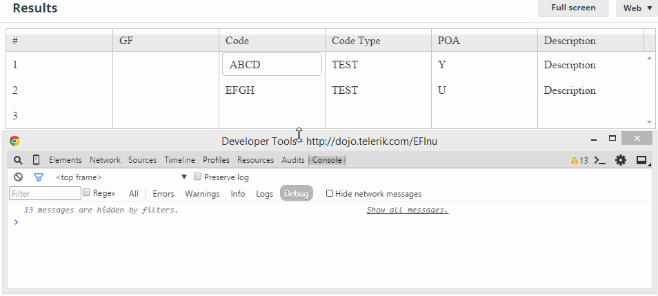 When my transport update function executes the data is the old values, not the updated ones. Am I missing something obvious here? Working demo at: http://dojo.telerik.com/EFInu