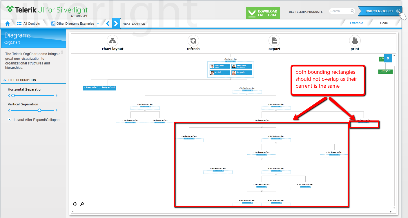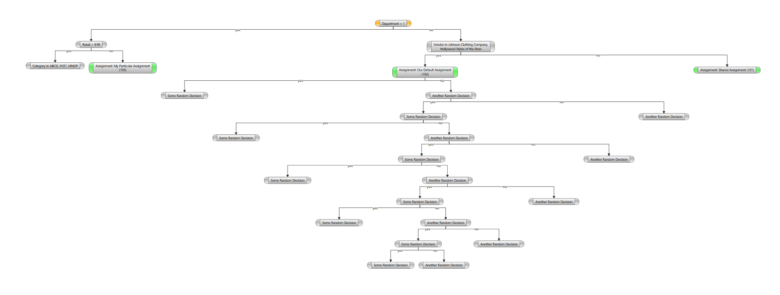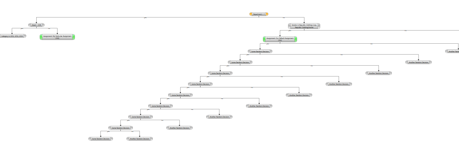 I am trying to represent a Yes/No decision tree using the Diagram control. When rendered using the TreeDown, OrgChart layout/router, it seems that some nodes are rendered with minimal offset, while others are rendered so that there is no vertical alignment, yet I add the connectors in the same fashion.