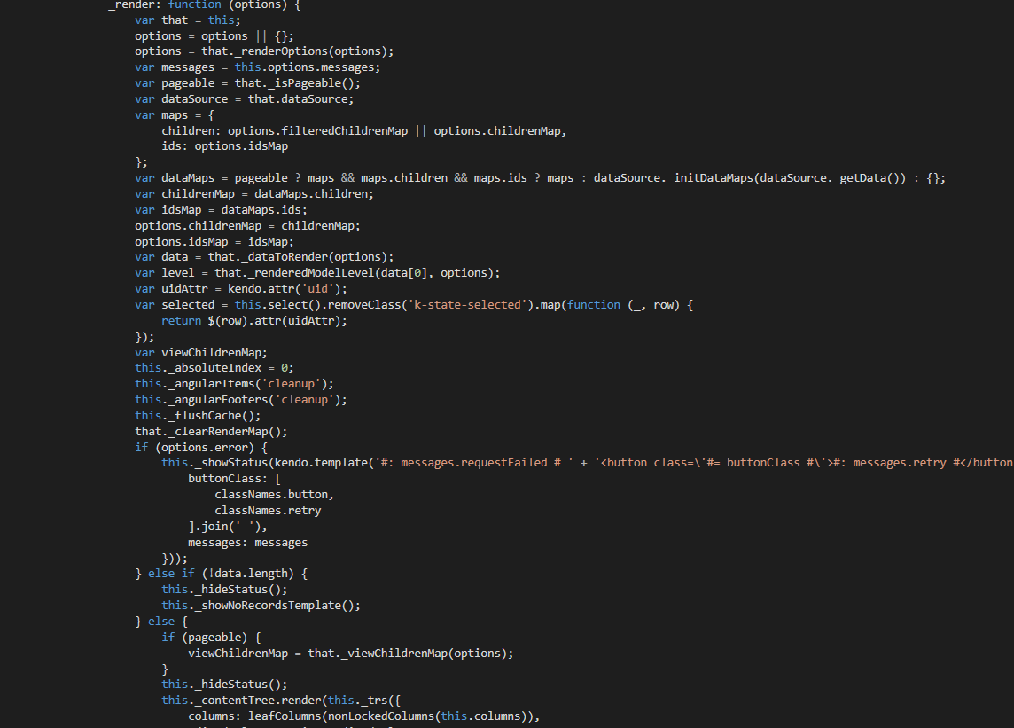 The spinning loading animation is created by the .k-i-loading CSS class added to the .k-icon element which also creates the style for expanded/collapsed state of the arrow indicator icon, by toggling the classes for .k-i-collapse and .k-i-expand.