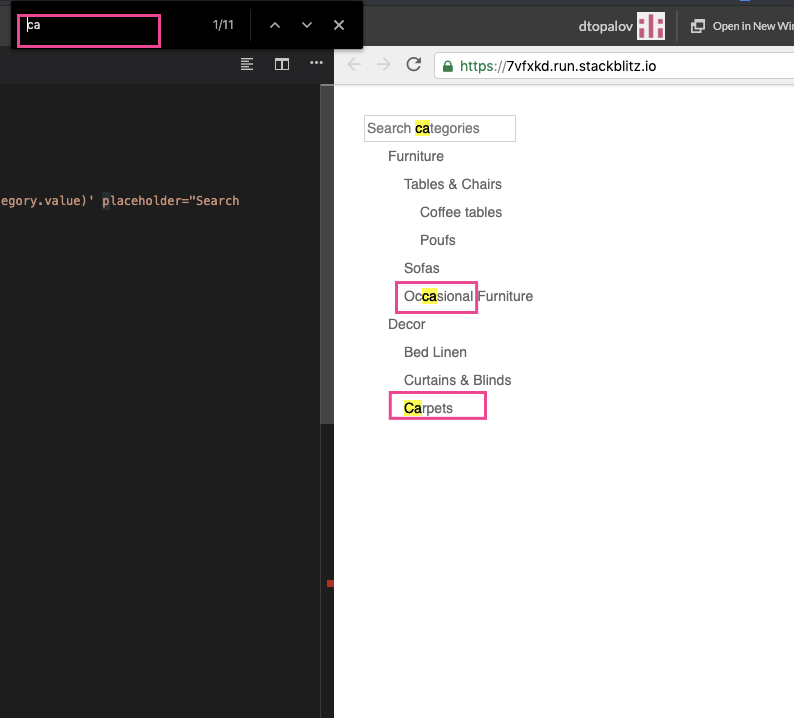 This example works fine. But it includes all child nodes/items of parent even child items does not contain filtered text. (only parent node contains filtered text and non of the child nodes/items. But still all the child nodes/items of parent are shown)