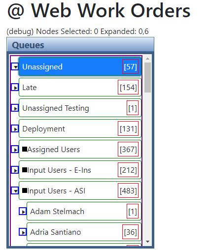 My JSON data is generated by a recursive data structure. Where a queue may contain a queue of queues. In the case of a child queue being empty I'd to not show it as expandable. Reworking the data sources is not possible. I'm looking for a pointer on how best to tackle this. I'm building a webified version of a ClickOnce WinForms app. See attached.