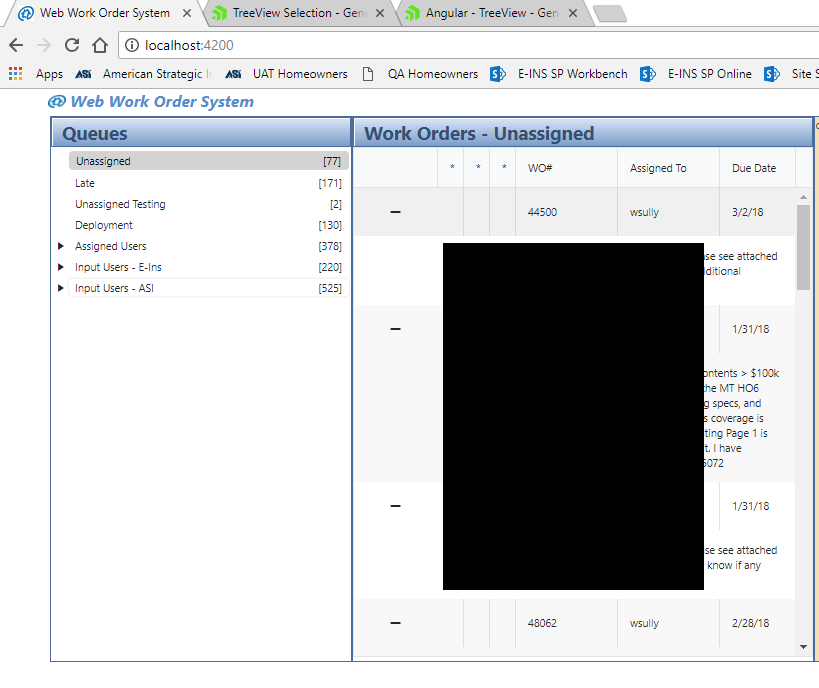 Your plnkr is enlightening and will be helpful when I get to the place of doing "work order assignments." Right now I'm trying to do something simpler (as I see it), that is, search the tree.