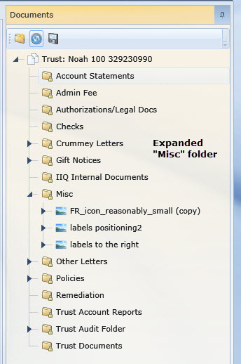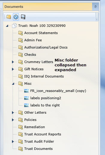 TreeViewMiscFolder2.jpg: I collapsed the "Misc" folder and then expanded it again. The child nodes now show correctly. This is what I would expect the first time I expand the folder.