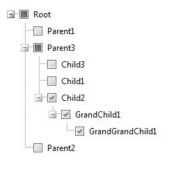 The image you sent me shows the treeview working as it should. Please read how the Tri-State CheckBoxes mechanism works here.