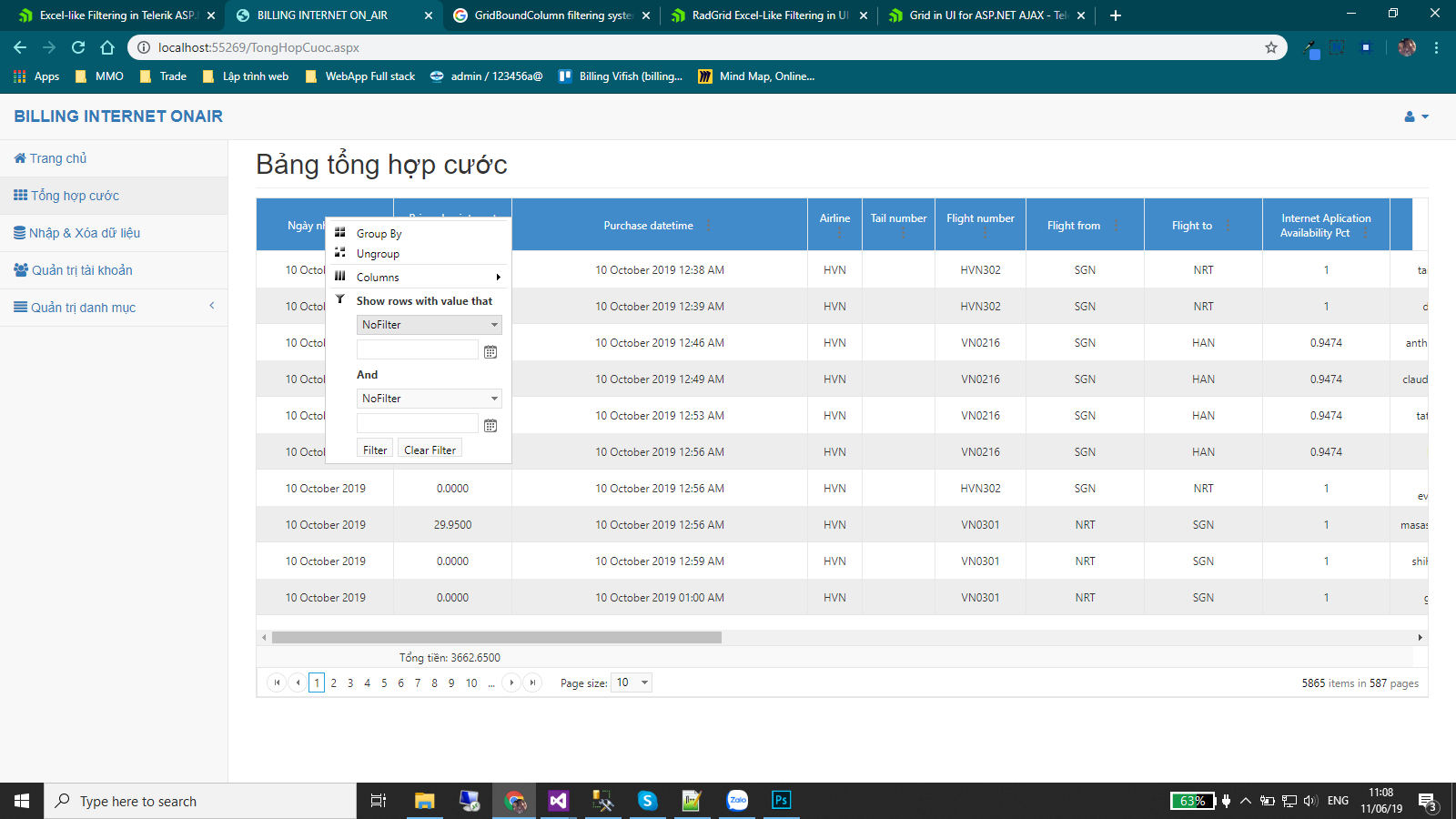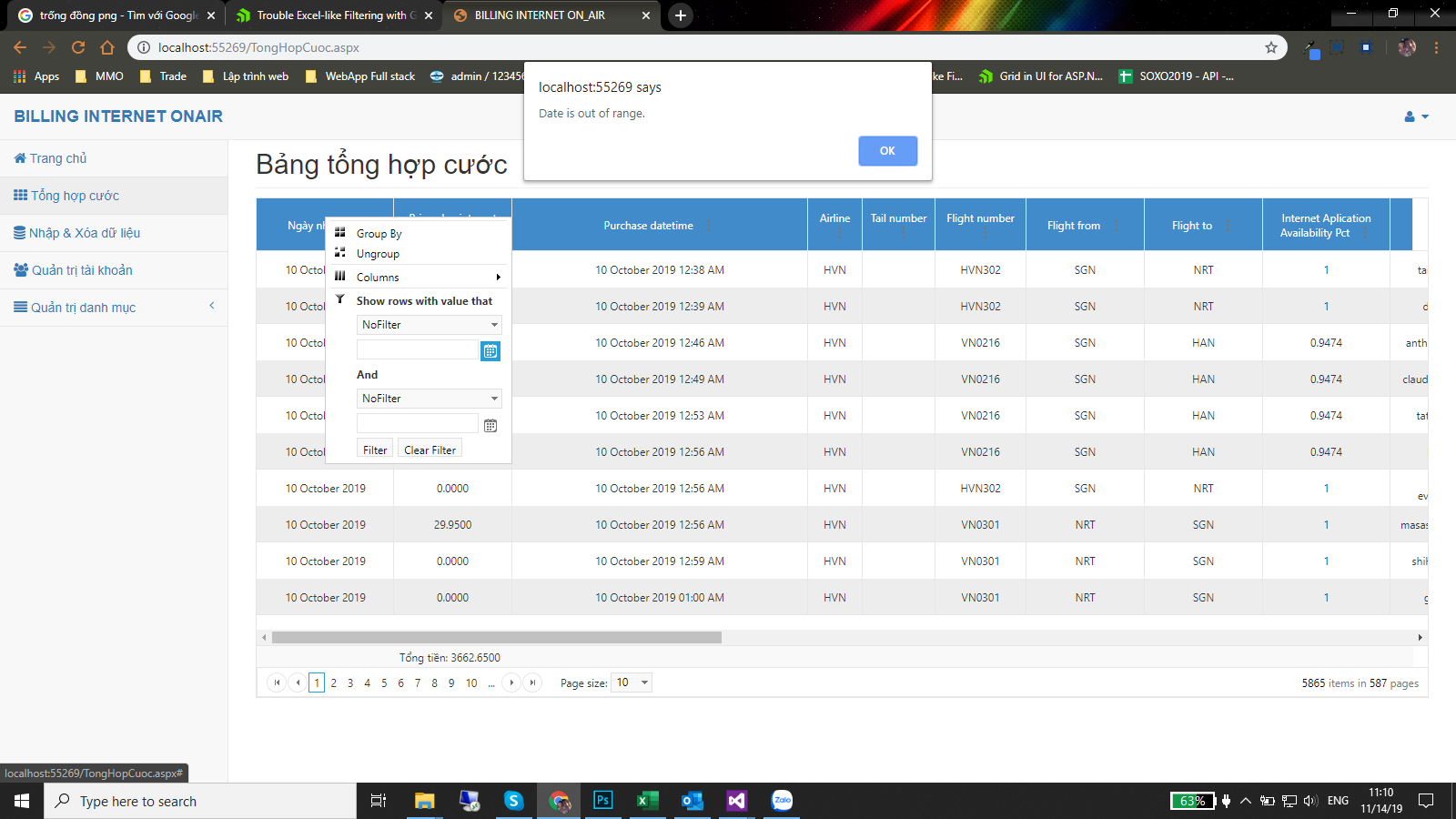Short description, I used Mode Like-excel Filtering for my Radgird. But I can not find any properties for date-ranger with Column Data is Datetime