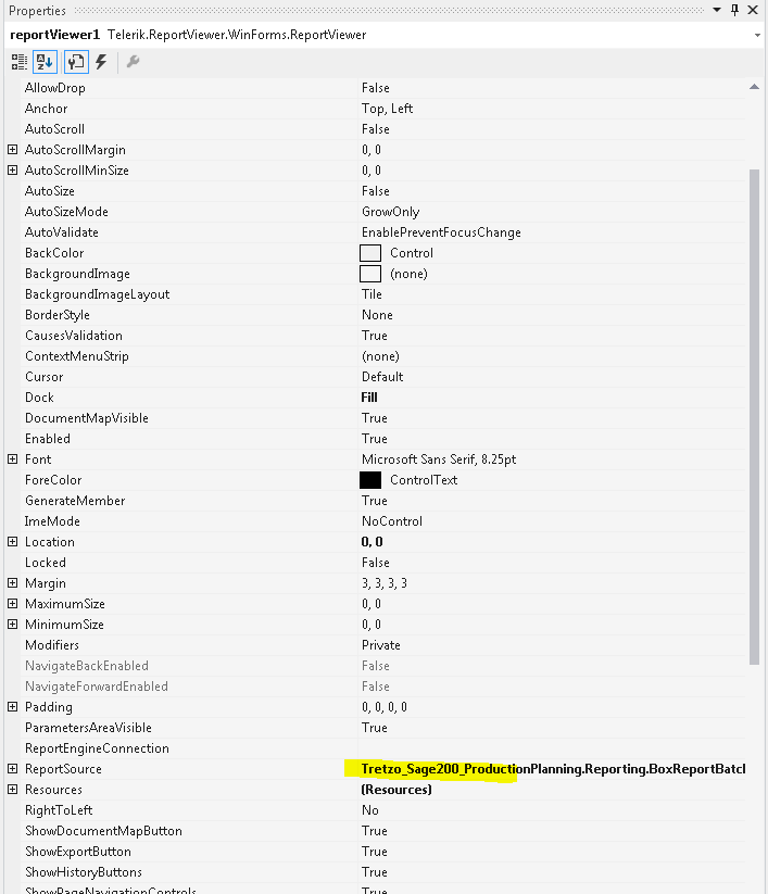 You can also see here the properties of my report viewer.