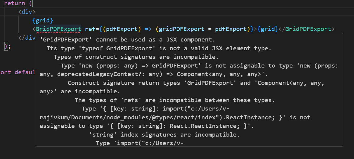 TS2786: 'Grid' cannot be used as a JSX component. Its instance type 'Grid' is not a valid JSX element.