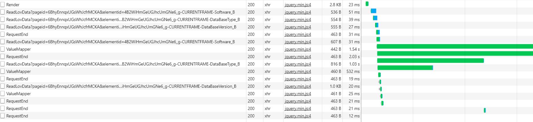 In the attached file, I have an example of a page with 3 dropdownlists; and we see for each of them the call of a second databound, just before the call of the valuemapper