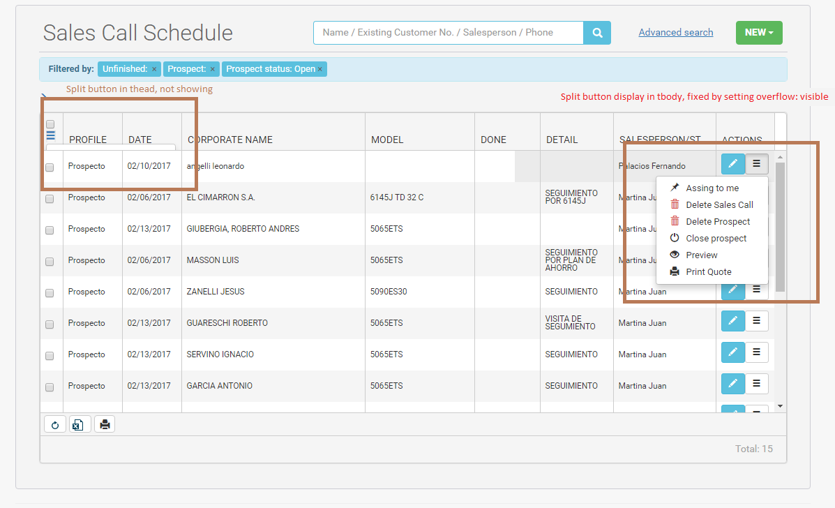 I used twitter bootstrap drop down for this pull down menu. However the pull down menu is hidden behind the cell and would only show the area within bounds of the cell. I need to the pull down menu to be the top floating div on top of the grid.