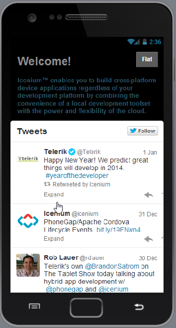 I have been working on an app that intergrates the twitter widget.