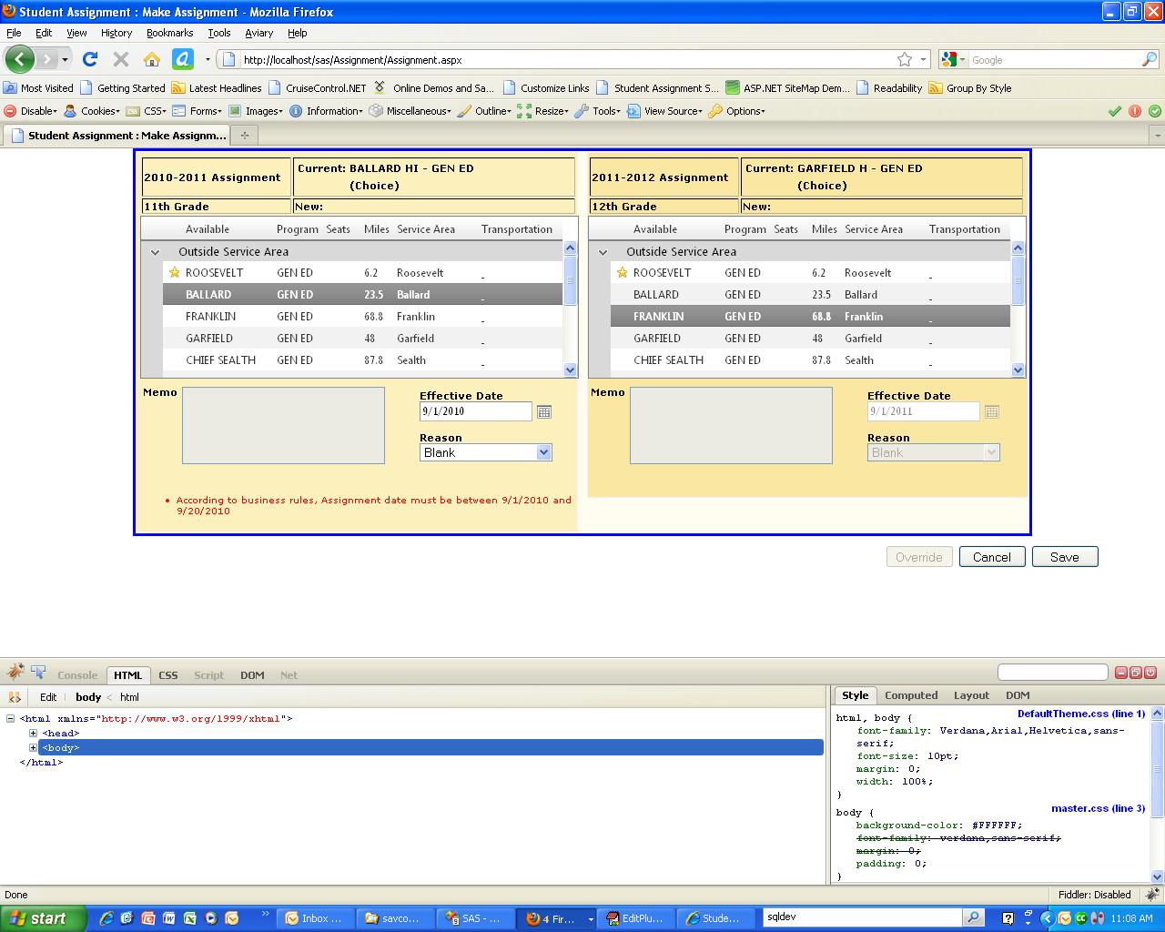 | According to business rules, Assignment date must be between 9/1/2010 and 9/20/2010 |