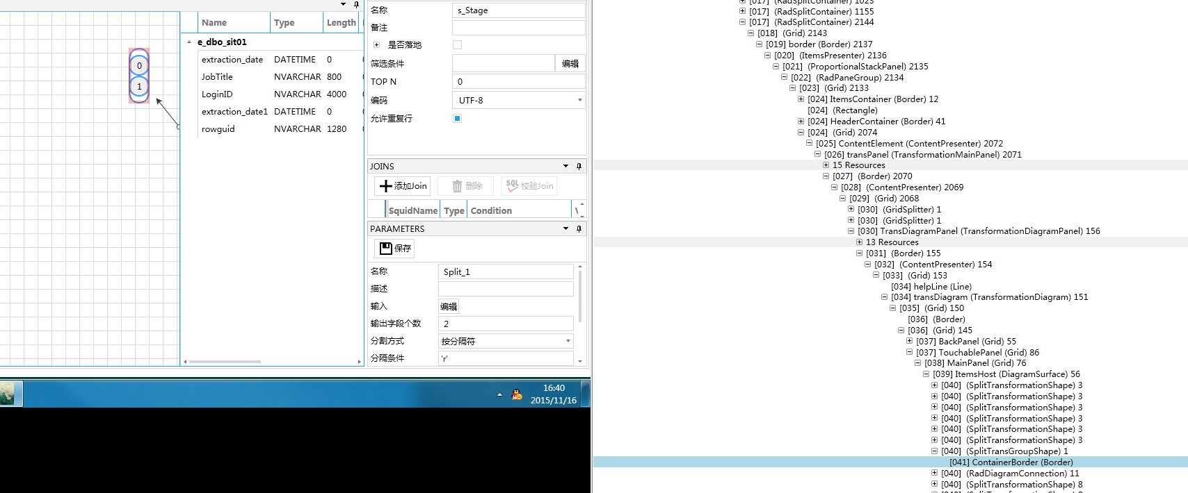 I use group to show group data, the group and item both can connec to other control , the design picture is as attach files "split.png"