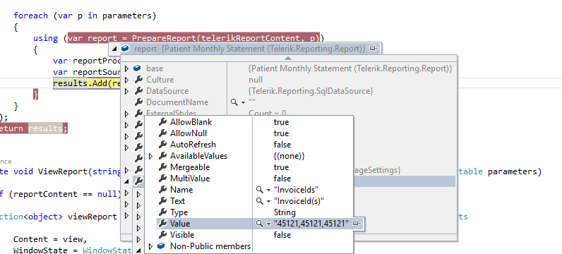 we will get invoiceids array(int array) as one of the parameter(values will be there in image1 ) in report , but wont assigning to the stored procedure parameter (i.e invoiceids). expecting value has to assign to stored procedure result