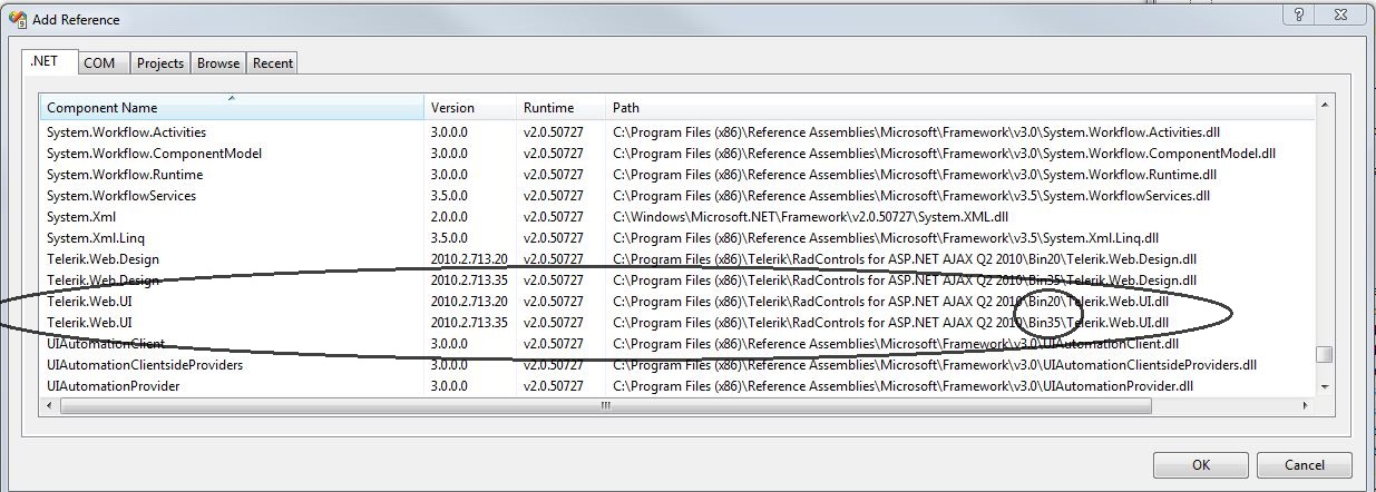 using System; using System.ComponentModel; using System.Collections; using System.Collections.Generic; using System.Configuration; using System.Data; using System.Drawing; using System.Web; using System.Web.Security; using System.Web.UI; using System.Web.UI.WebControls; using System.Web.UI.WebControls.WebParts; using System.Web.UI.HtmlControls; using Telerik.Web.UI; using Telerik.Web.UI.Calendar; Is there something I'm missing? This is only my second project in which I've used telerik controls so maybe I missed something basic in the setup of the webforms?