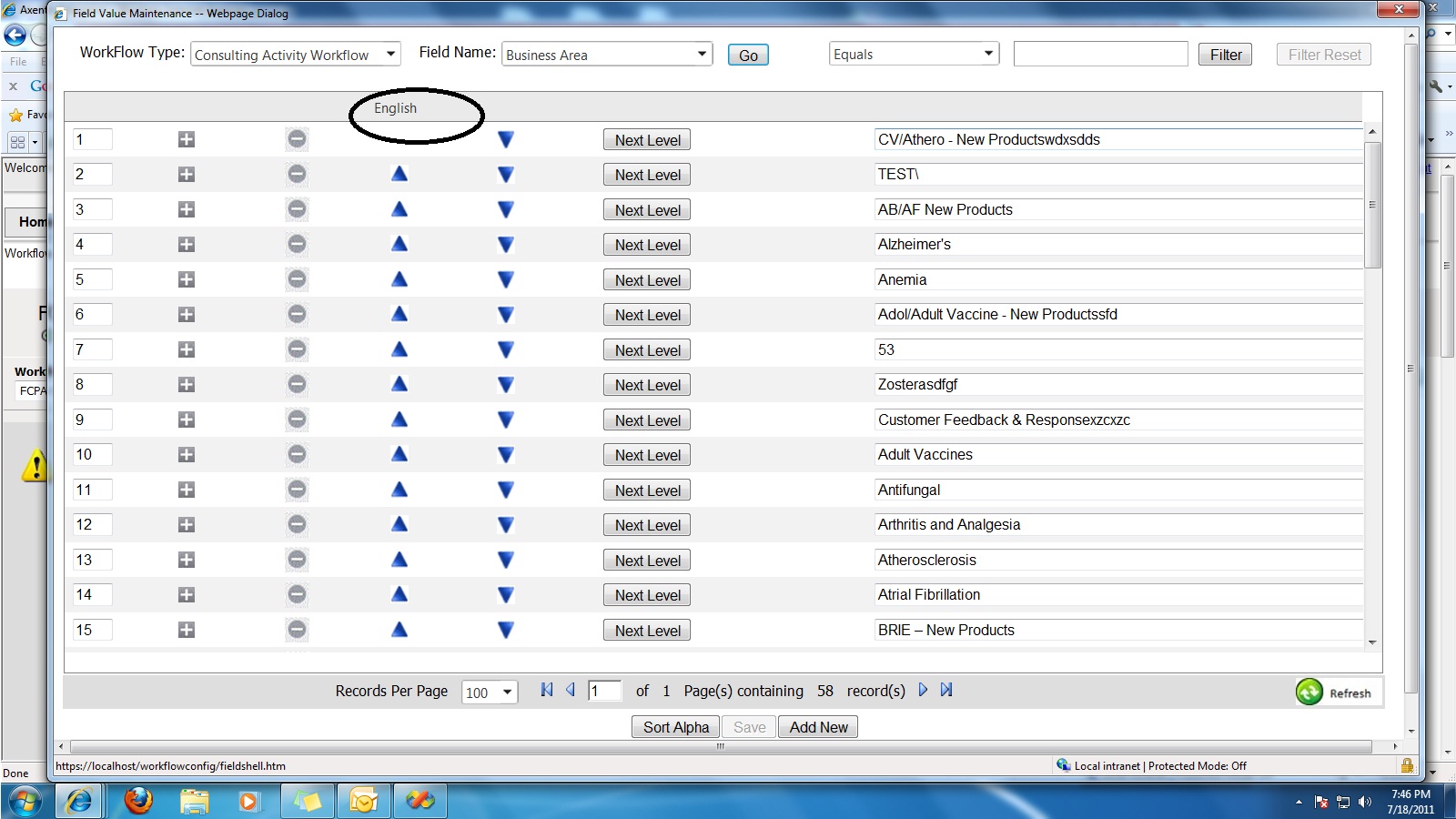 //To create English Column in the grid