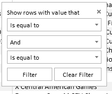 Now, when I click on the funnel, the first time, the filter only displays the combo boxes, as you can see in the enclosed screen shot.