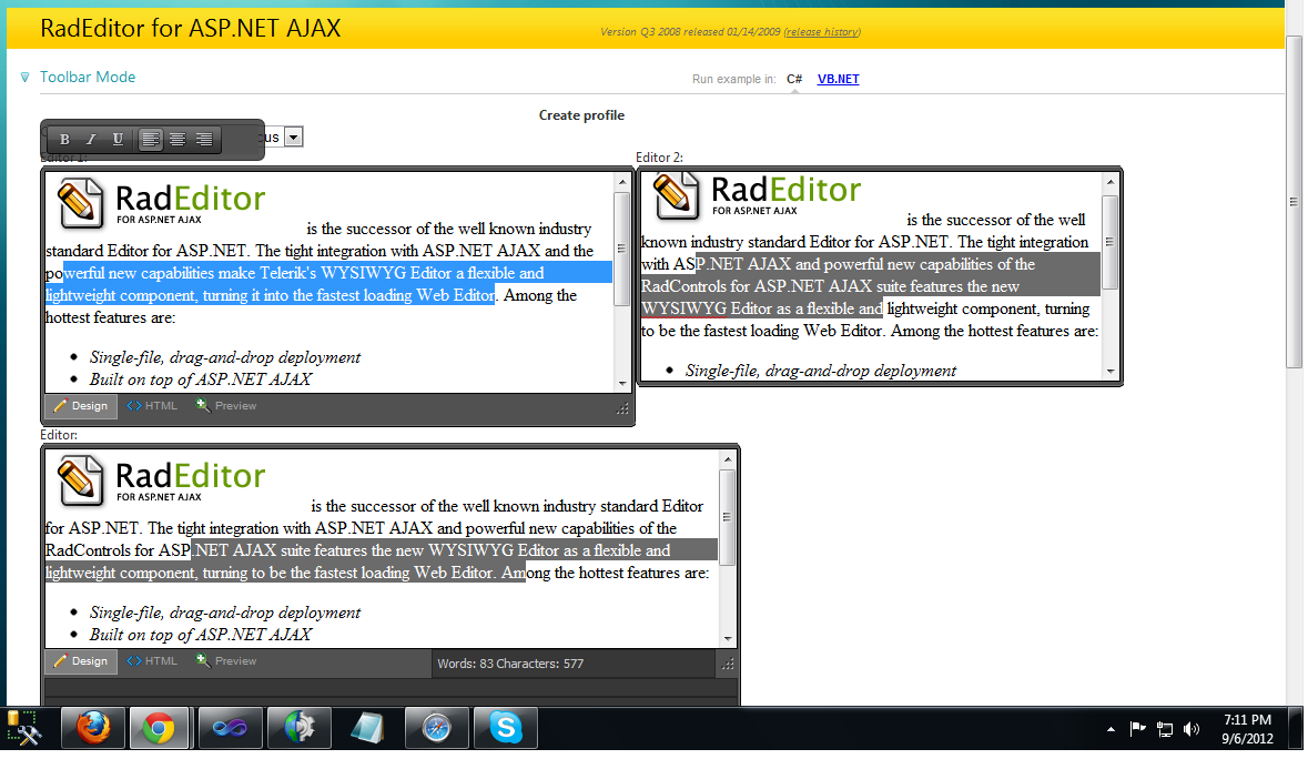 Here, I am trying to execute radeditor command from another button control which is outside the the editor toolbox. So, I am able to execute the commands but the issue is, when we select some/all text in the editor and try to click button to apply some formatting the highlight/selection of text is clear. but when we do the same thing on Chrome, firefox, safari it works well.