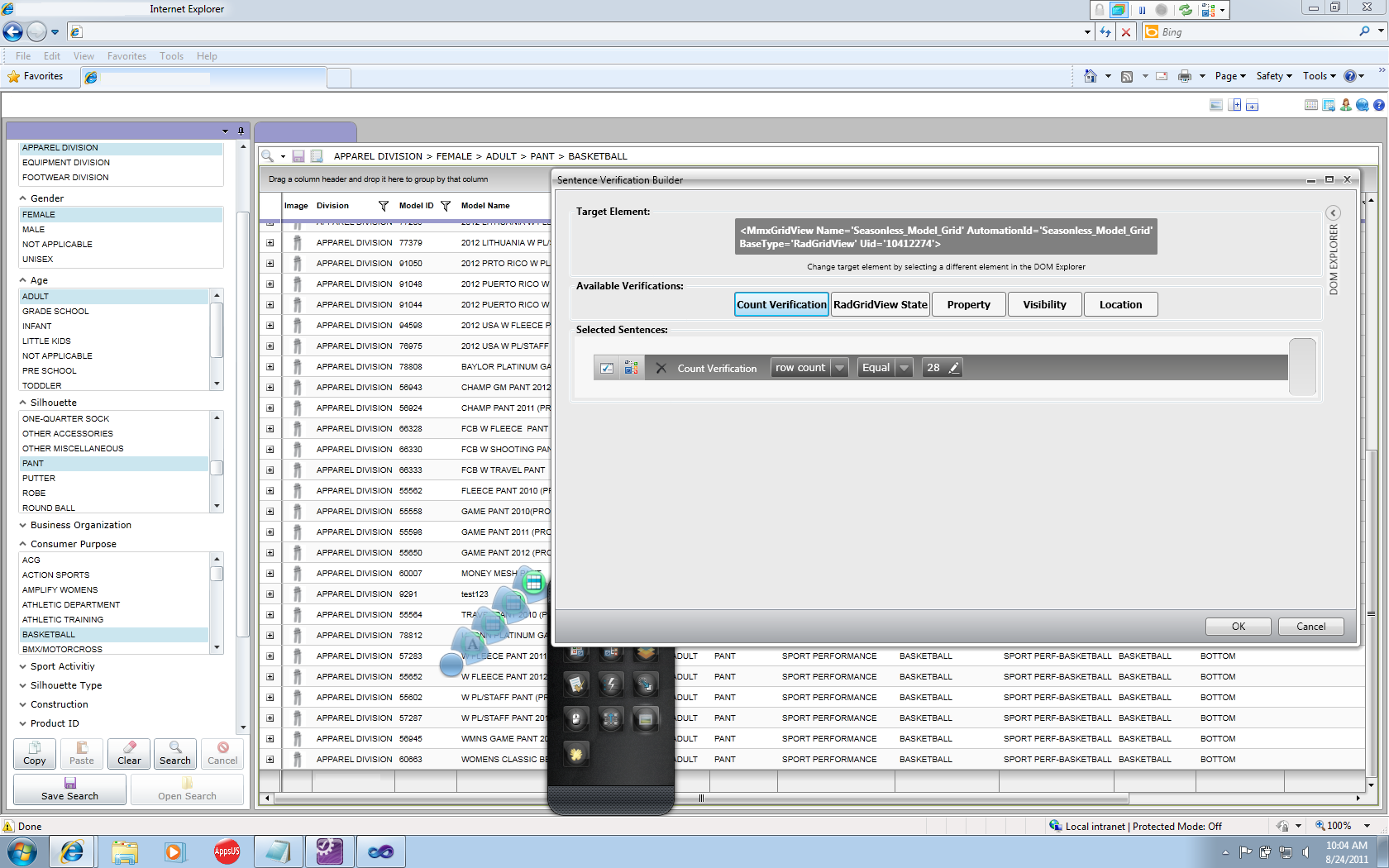 As for the row count verification, currently we don't have solution to this problem. GridView does not count all rows in the grid. This is a limitation of the VisualTree contained in the Silverlight engine. It puts in the VisualTree only what it needs to render the page on the screen.