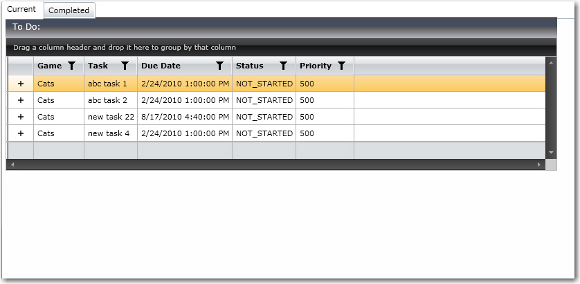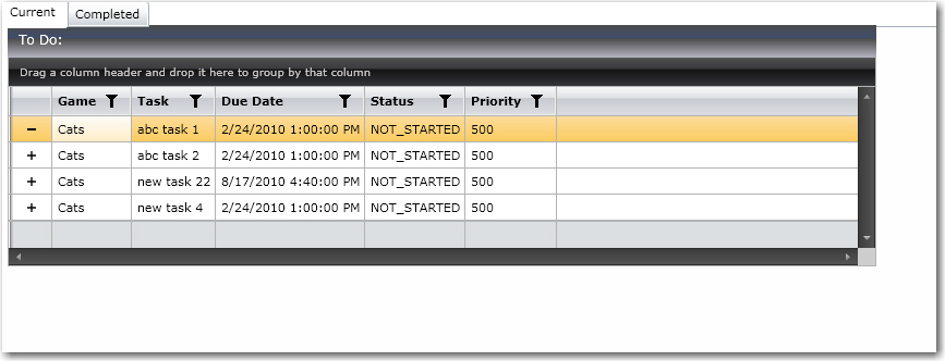 I have TabControlcalled mainTabs with a TabItem called CurrentTasks. In the CurrentTasks TabItem I show a GridView(say RadGridView1) with a list of tasks which works fine. This GridViewis populated in code behind with an ObservableCollection.