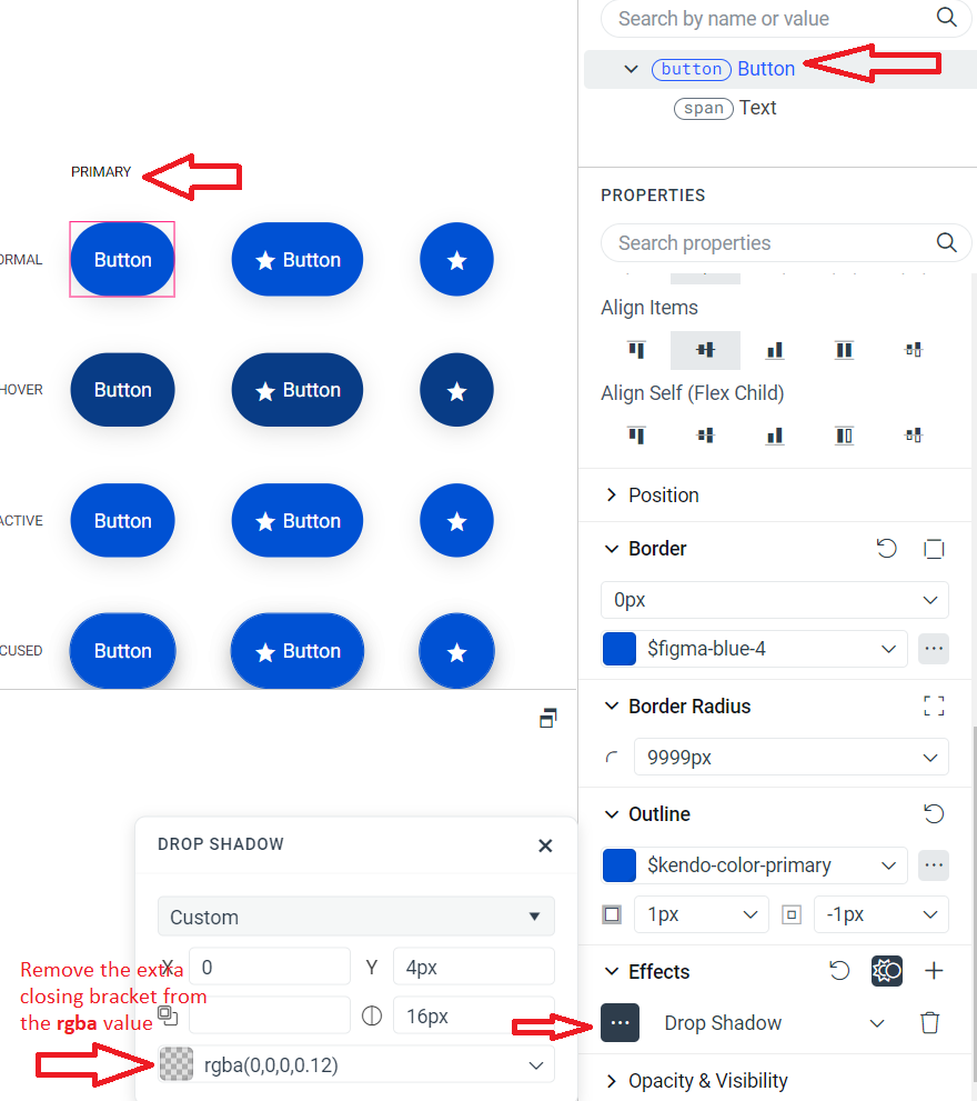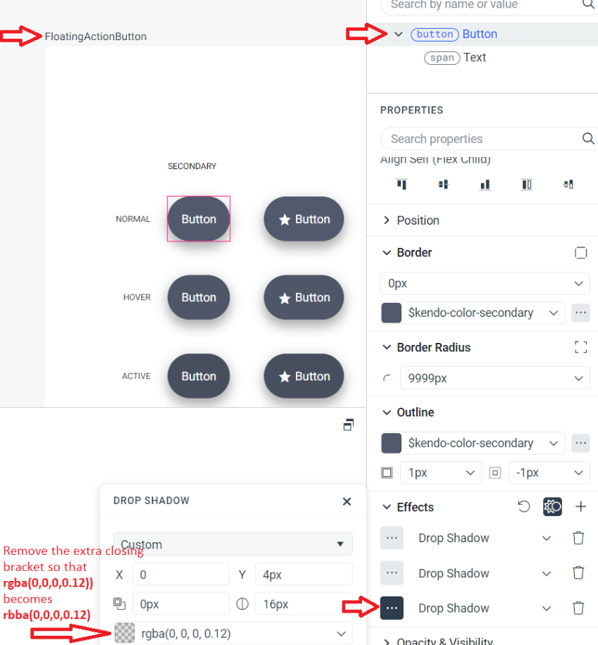 Invalid value for `box-shadow` property. Mismatch syntax: none | <shadow># value: 0 4px 16px 0 rgba(0, 0, 0, 0.12)). Check the "box-shadow" property of your recently edited styles!