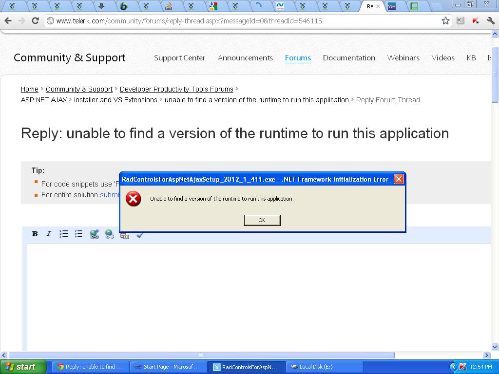I have the same error , when im launching Ati catlyst control center it says "unable to find a version of the runtime to run this application" I installed microsoft .net 4 and .net 2 and redistribuirable c++ 2010 and still the same