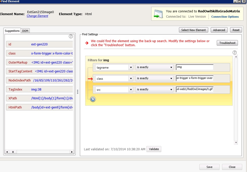 Unable to locate element. Search failed!