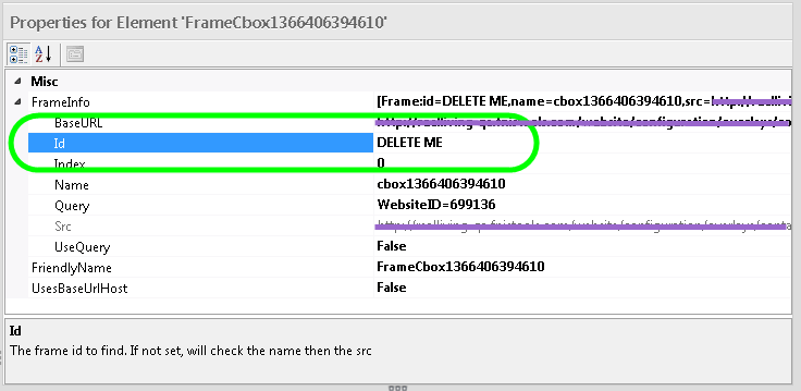 I found that the frames themselves had dynamic IDs so every time the frame displayed it had a new ID even though the content is always the same. If you click on the frame in your element list you can edit the frame properties. I just delete the ID and in some cases even the name. Same with fancybox overlays whack the ID from the properties and the elements within are found. See pic attached