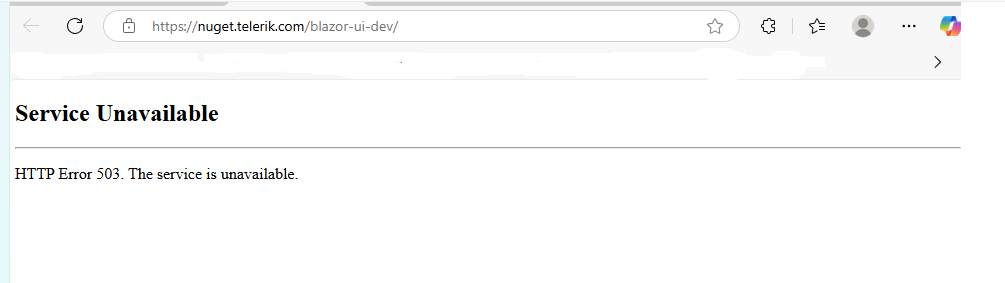 Could you please check the status of the https://nuget.telerik.com/blazor-ui-dev/ NuGet feed? Any information on this outage or advice on how to resolve this would be greatly appreciated.