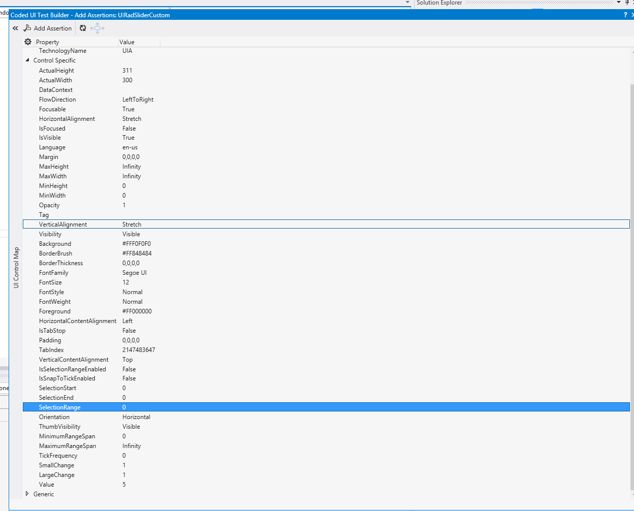 We have consumed RadSlider control in one of our application.While automating that , Rad Slider Control displayed in Inspector tool as UICustom control and Object is found through automation. But slider control properties like position, maximum ,minimum and Slide are not showed.