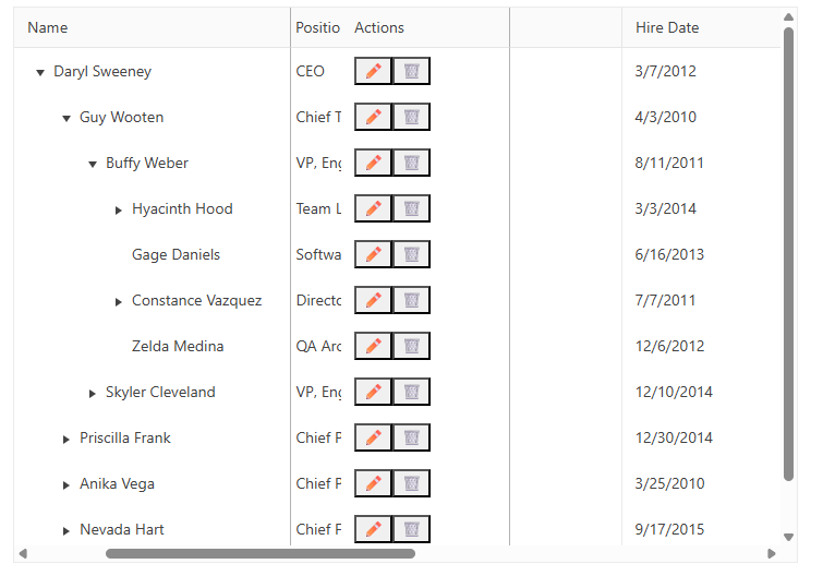 I'm using the Kendo React TreeList and trying to lock the first two columns: one is a text column ("Name") and the other is a custom "Actions" column with buttons/icons.