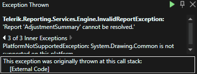 I'm migrating my solution from Dot Net Framework to Dot Net Core 6. On Local Dev Machine which is running on Windows, the reports are getting generated without any issues, but when the same is run in a Docker Container it fails with the following exceptions.