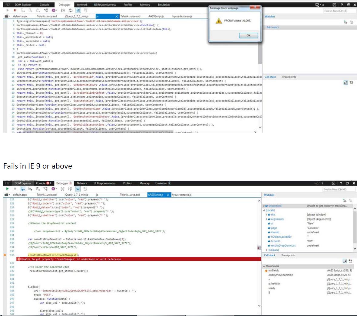 Unable to get property 'trackChanges' of undefined or null reference in IE 9 and above and chrome. No issues in IE 8. Using jQuery on page load.