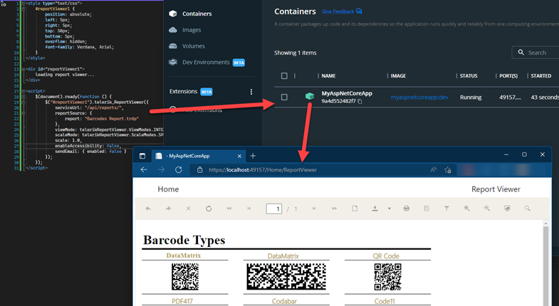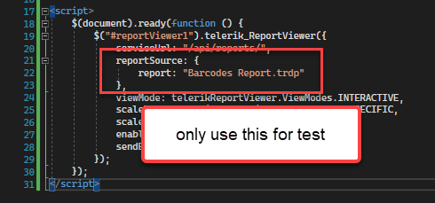 FYI: If we use "IIS" to run the Rest Service project, it works fine so it will show the demo report (Barcode examples report) without any error.