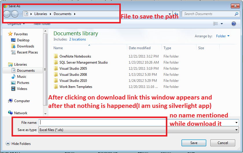 In my application while click on download link its always take the file save path which used last time (like i used c:\myfolder\rrr.xlx) its always take the same please see screenshot
