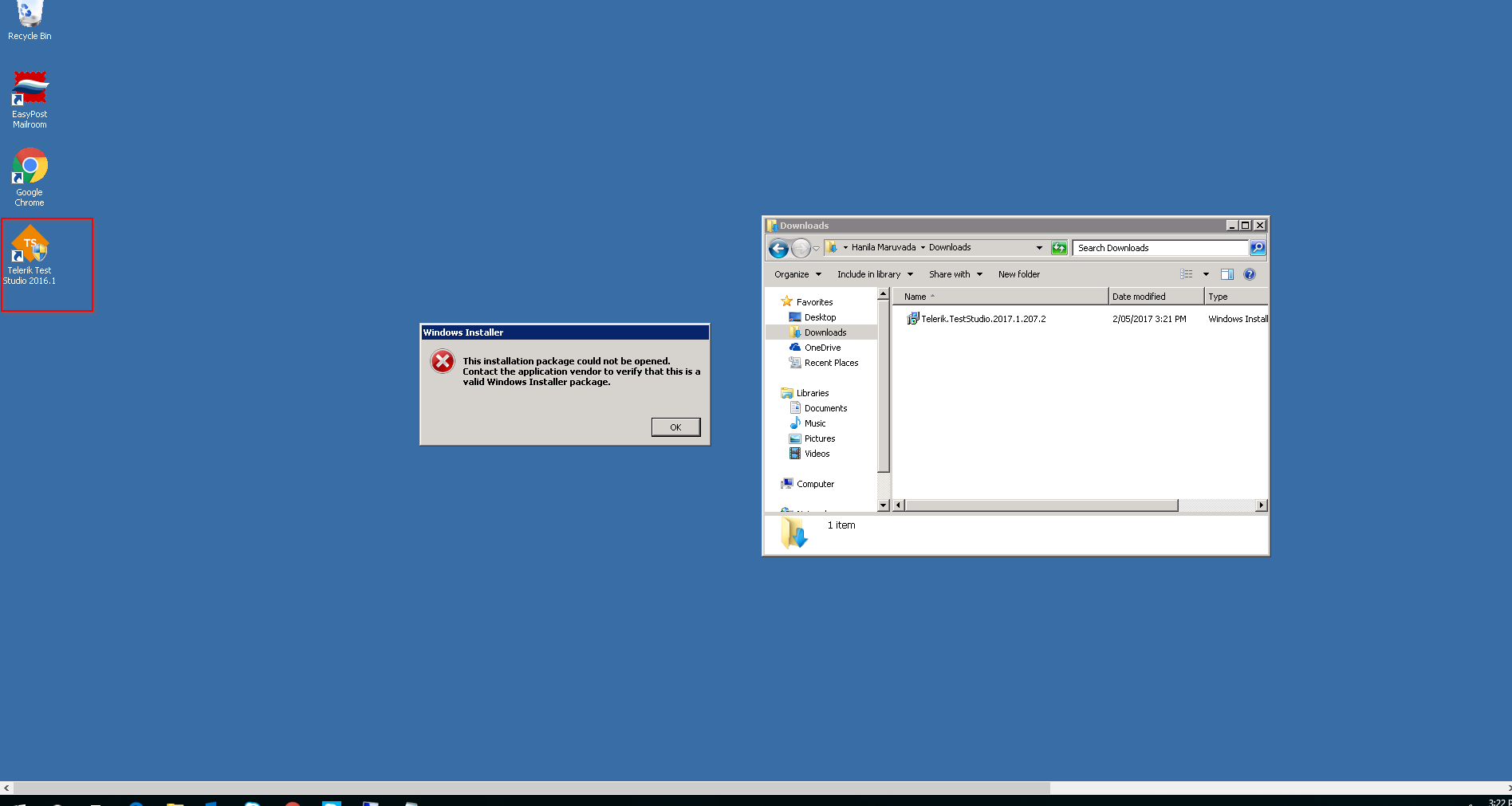 I have downloaded the latest telerik Test studio package to install (I have 2016 version installed. want to update it to 2017) and encountered attached error on execution.
