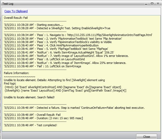 Unable to locate element. Details: Attempting to find [Silverlight] element using Find logic (Html): [id 'Exact' silverlightControlHost] AND [tagname 'Exact' div][tagname 'Exact' object] (Silverlight): [name 'Exact' LayoutRoot] AND [XamlTag 'Exact' grid][XamlPath 'Exact' /image[4]]Unable to locate element. Search failed!