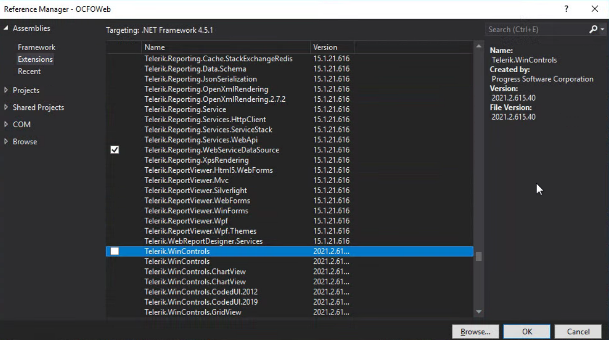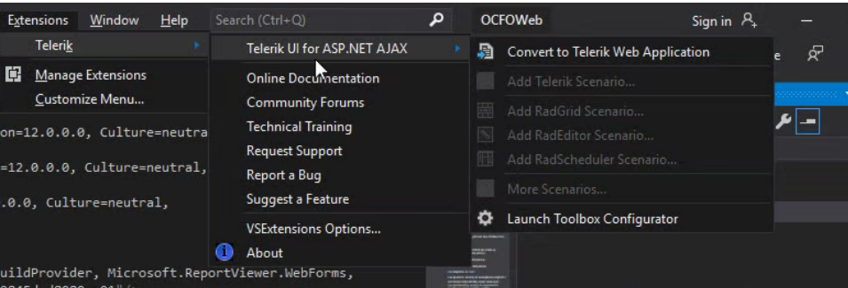 I have inherited a solution from a developer that's no longer here. I am new to Telerik and not sure what the problem is with this project. In the extensions menu, it tells me to convert to a Telerik project even though it is already a telerik project. I have been told not to use the convert option because it causes problems when it's already an existing Telerik solutions. I have manually removed references that were marked when the build failed and tried to re-add them but I can't find Telerik.Web, only Telerik.Win