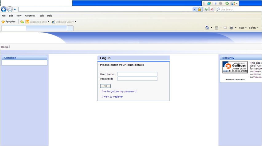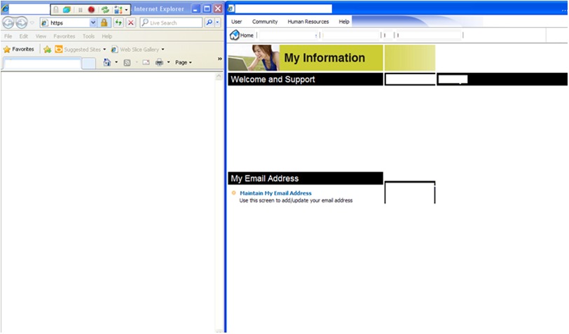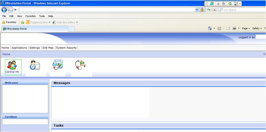 This screen is recognized by Telerik as well. Once in this home screen, I click the “Central HR” button (bordered in green below) and this navigates me to a new window