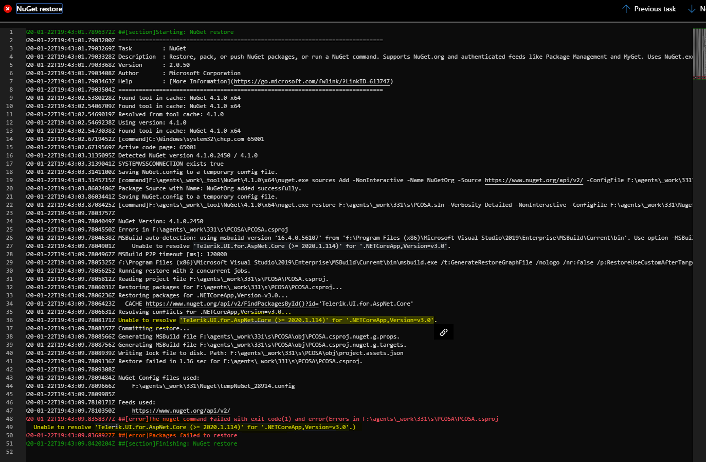 However using Azure DevOps build pipeline, we are getting unable to resolve error.