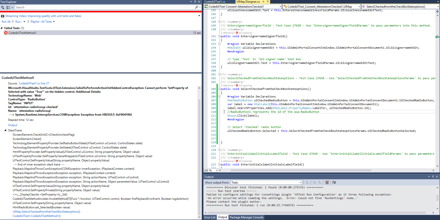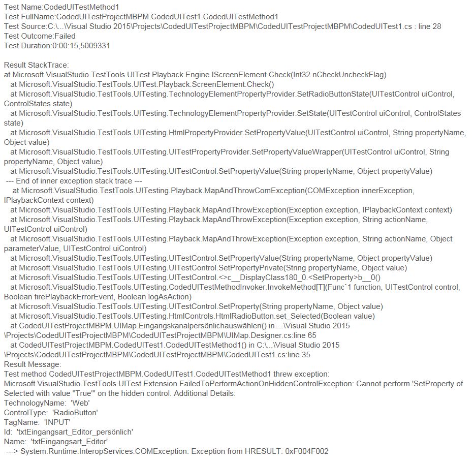 our data center want to have some automated test scenarios with Microsoft Test Manager (MTM) 2015 and some coded UI tests in Visual Studio 2015. But there is a problem with the Telerik RadComponents in version 2013.2.717.35 of the Telerik.Web.UI. We can create and record the test case without any problems, but if we want to make an automated test, by clicking "run" in the MTM or VS2015, the test failed with an exception (see post attachments).