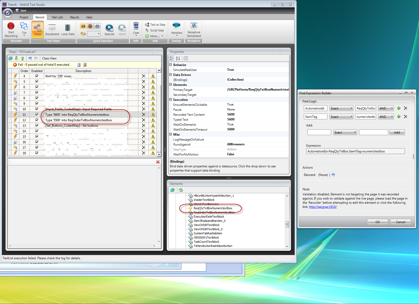 I have a step that inputs a value into a numeric textbox. The recording works fine, but in the execution, there is no value typed into textbox. I have 2 tests that use numeric testboxes - both are unable to type a value during execution.