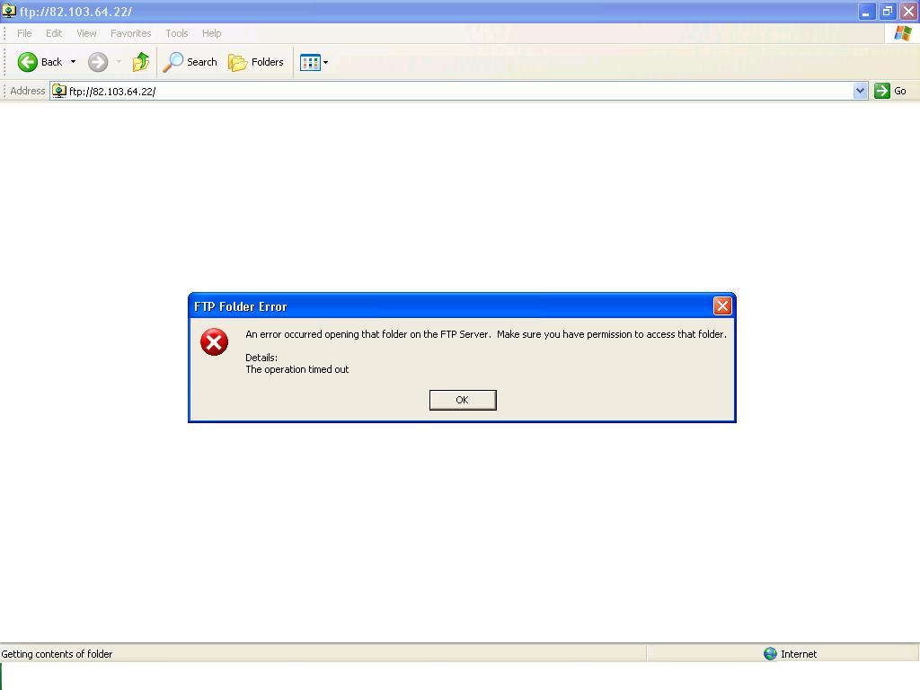 "An error occured opening that folder on the FTP server. Make sureyou have permission to access that folder. Details: The operation timed out ".