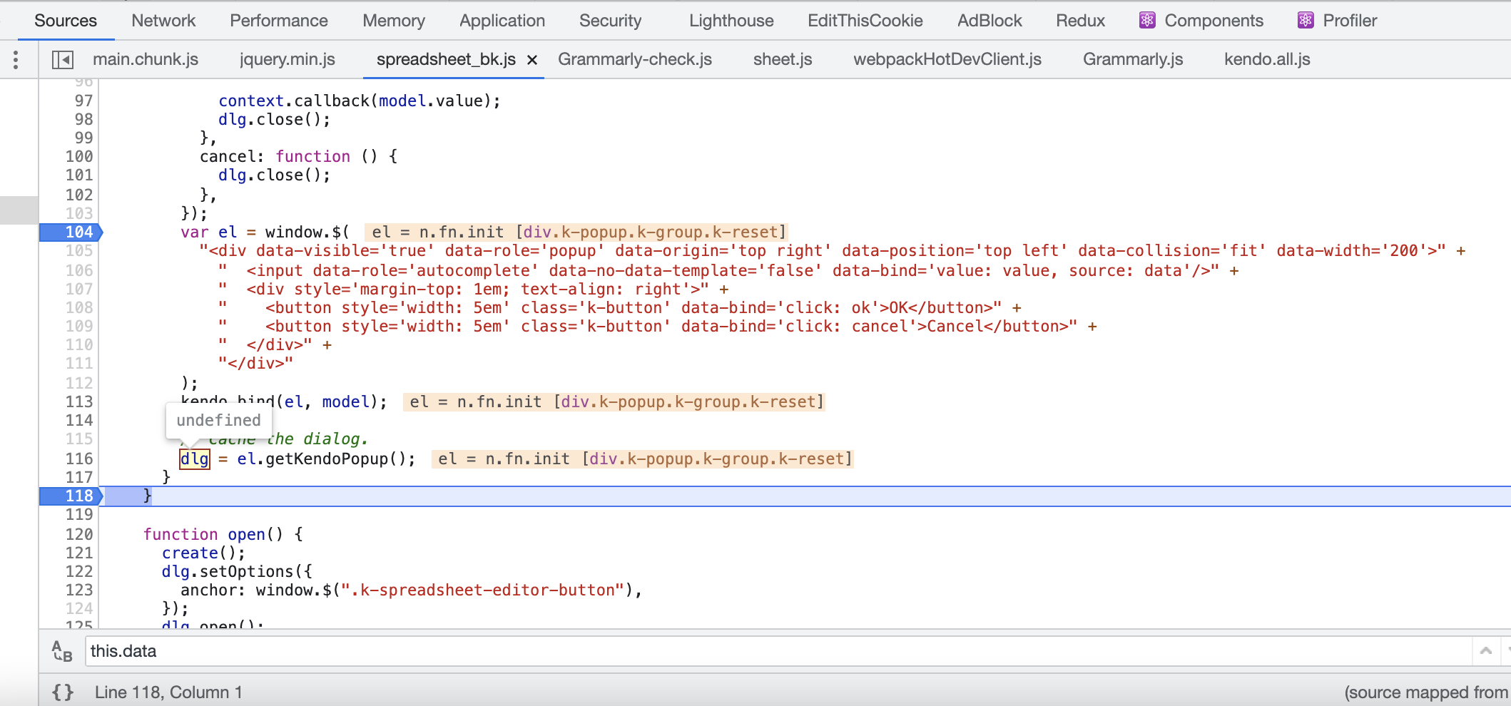 dlg = el[0].kendoBindingTarget.target;Here is the modified example: